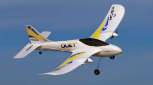Teach yourself to fly with the Duet RTF trainer! This small RC aircraft turns your dreams of flight into a reality. Even if you've never flown an RC airplane before, you could be flying in no time with Virtual Instructor™ technology. This HobbyZone®-exclusive technology makes minor corrections and adjustments to help you stay confidently in control while you learn the basics. No other RC model can offer this experience at such an incredible price.