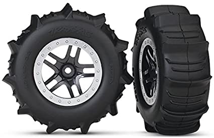 Neumáticos y ruedas, ensamblados, pegados (SCT Split-Spoke Satin Chrome, ruedas estilo beadlock, neumáticos de paleta, inserciones de espuma) (2) (4WD delantera / trasera, solo 2WD trasera) (clasificación TSM)