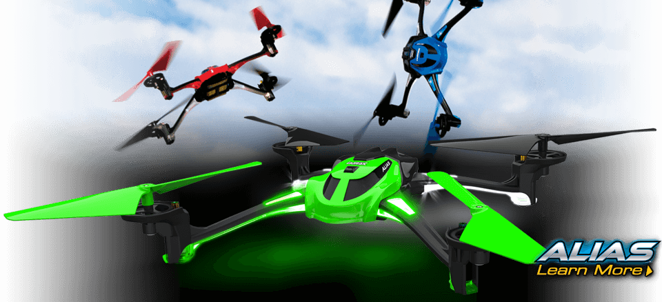 Alias is a clean-sheet design that focuses on the performance and design elements that make flying, and even learning to fly, fun. The first mission objective was durability. Alias is built around a unique molded-composite frame that is combined with clever high-tech construction to make it extremely light and resilient. Your flying fun goes on and on without worrying about breakage from crash damage. The next mission was performance. Fun always comes from having more power so Alias' motors have 50% more power than standard motors, and when combined with the lightweight design and high-tech materials, Alias is lightning quick and ultra-responsive. A completely new flight control system was developed that provides unmatched 6-axis stability that works in the background without impacting performance and speed. It acts like a virtual spring that snaps Alias back to level controlled flight no matter what situation you find yourself in. New pilots can fly faster and perform aerobatic maneuvers sooner than they ever thought possible with Alias' unique flight control system.