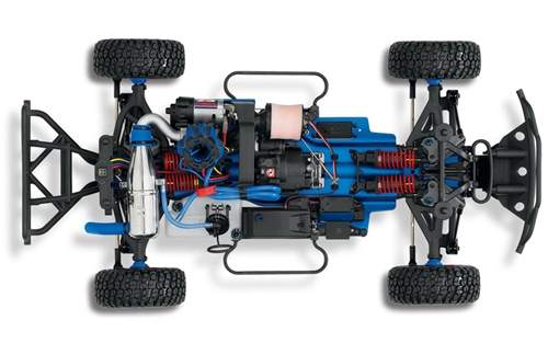 Bigger. Faster. Louder. Slayer Pro 4X4™ delivers the screaming sound and ballistic thrust that every nitro driver craves. Now with a 10% larger footprint, Slayer Pro 4X4's long wheelbase chassis and wide track stance deliver unmatched stability in rough conditions and precision high speed cornering for incredible side-by-side, fender-banging racing action. Extreme TRX® 3.3 power punches hard and revs fast to rip past the competition. The amazing Revo®-Spec linkage-based suspension and hard-anodized GTR shocks deliver seemingly bottomless suspension travel that simulates the handling and jumping ability of full-size Pro 4X4 trucks. Slayer Pro 4X4's bodywork brings scale looks and 50+mph performance for all-day fun, excitement, and competition. It's the nitro short-course truck that could only come from Traxxas, The Fastest Name In Radio Control®.