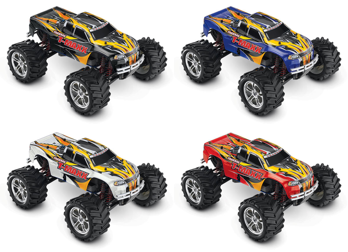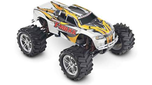 One T-Maxx 2.5 RTR truck with pre-installed 3-channel 2.4GHz radio, and a TRX 2.5 racing engine, EZ-Start electric starting system, EZ-Start battery and 12V DC charger, fuel bottle, extra glow plug and tool set.
